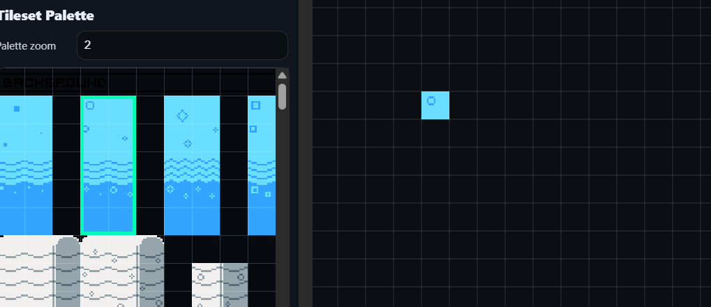 Load a tileset: Choose a PNG tileset. Set Tile W/H to match your tile size (ex: 16x16). If your tileset has padding, set margin/spacing so the palette lines up.